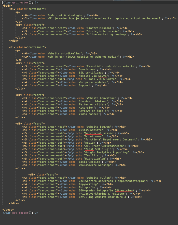 Met deze screenshots en code snippets laat ik de ontwikkeling zien van de online-producten tool. Op dit moment is de tool hard coded. Dit komt doordat er geen tijd is om de Google Docs API te implementeren. Buro 3 zal hier dus mee verder gaan. Ik heb er wel een proof of concept van gemaakt. Deze kun je in mijn onderzoek vinden.