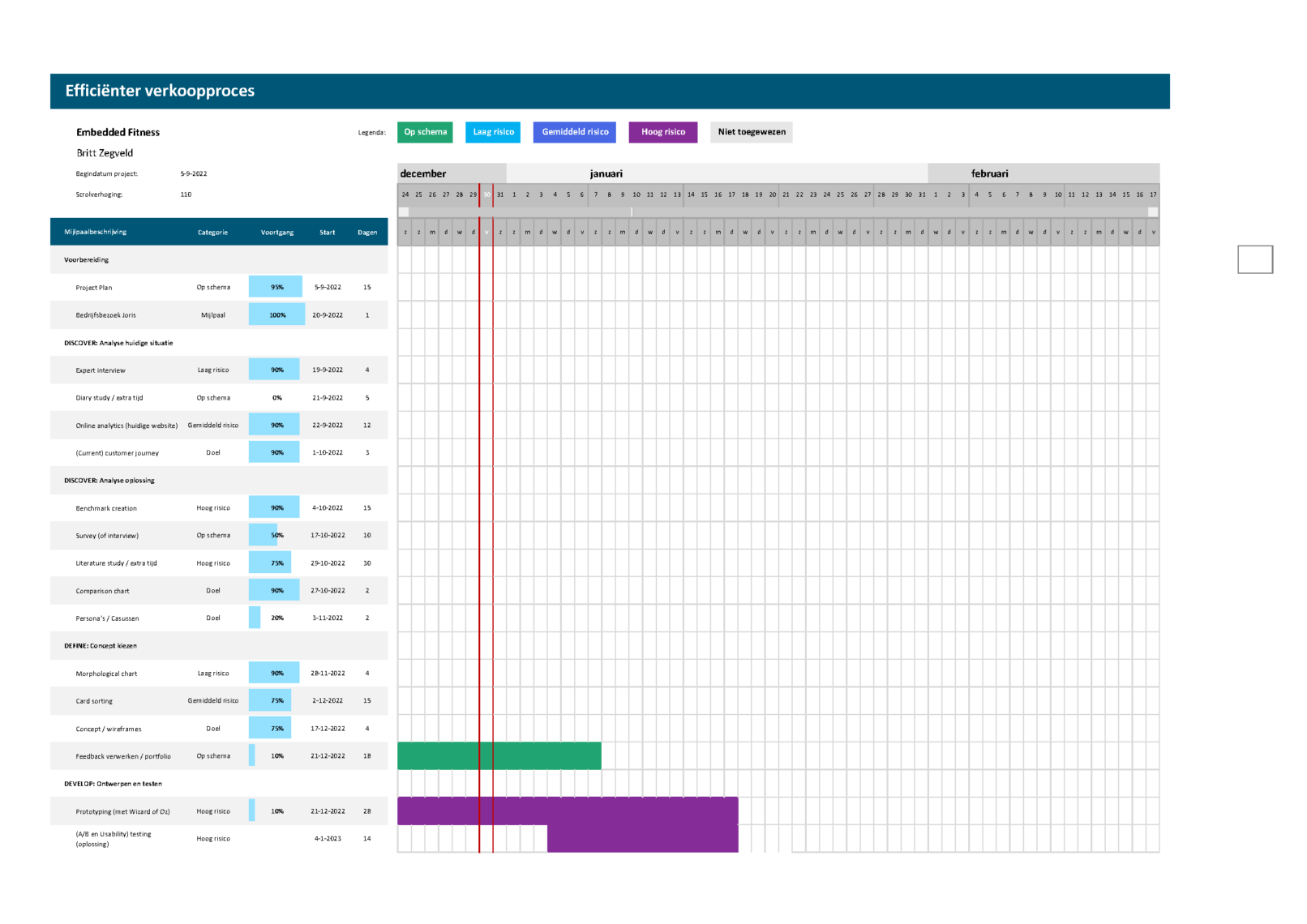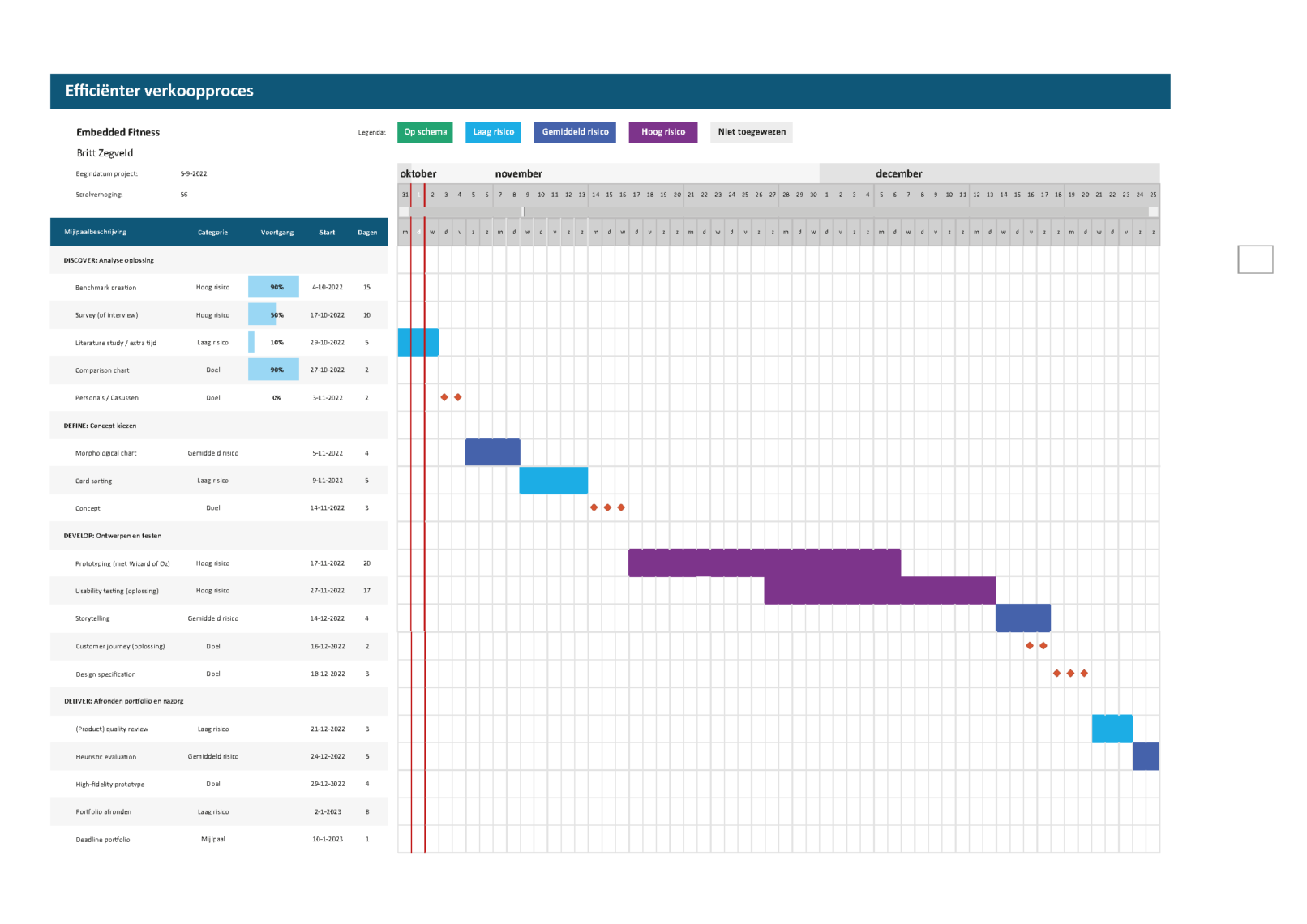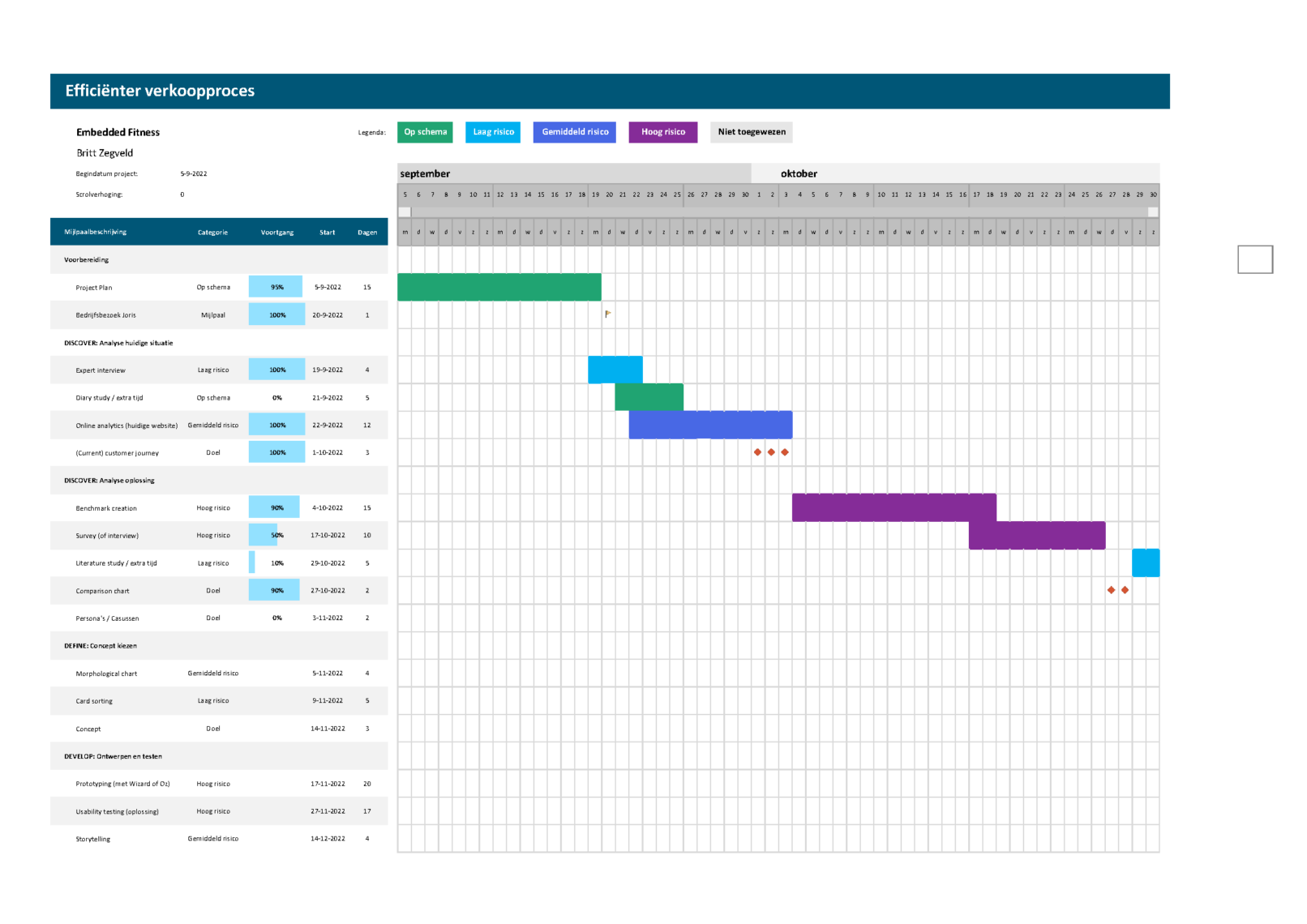 Tijdens het opstellen van het Project Plan heb ik verschillende planningen gemaakt. Ik heb een Gantt-diagram gemaakt. Deze kun je dus hieronder bekijken. Daarnaast heb ik een Scrum bord gemaakt op Trello. Deze heb ik vervolgens geïmporteerd in het Tasks gedeelte van Teams, omdat ik daar meer functies kan gebruiken. Hiervan staan ook afbeeldingen in de slider hieronder.
